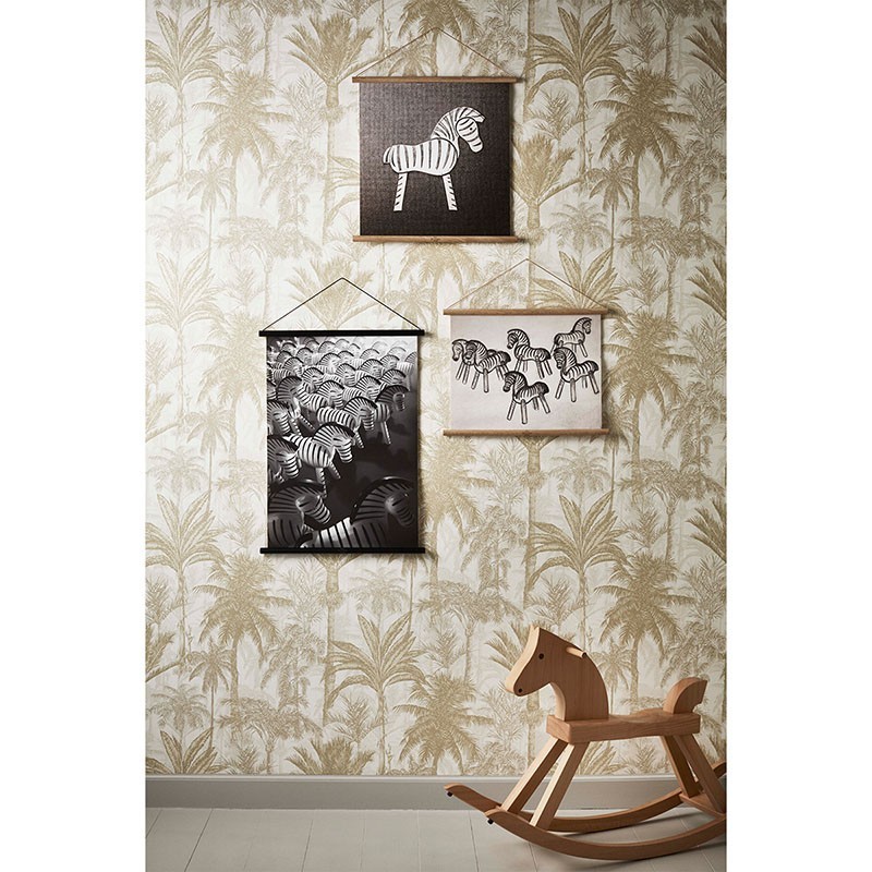 Photograph of original charcoal sketch by Kay Bojesen, one of the few sketches he made of the zebra. Reproduced on canvas (100% cotton) with a wooden frame and leather cord. The dimensions are 40 cm wide and 30 cm high.