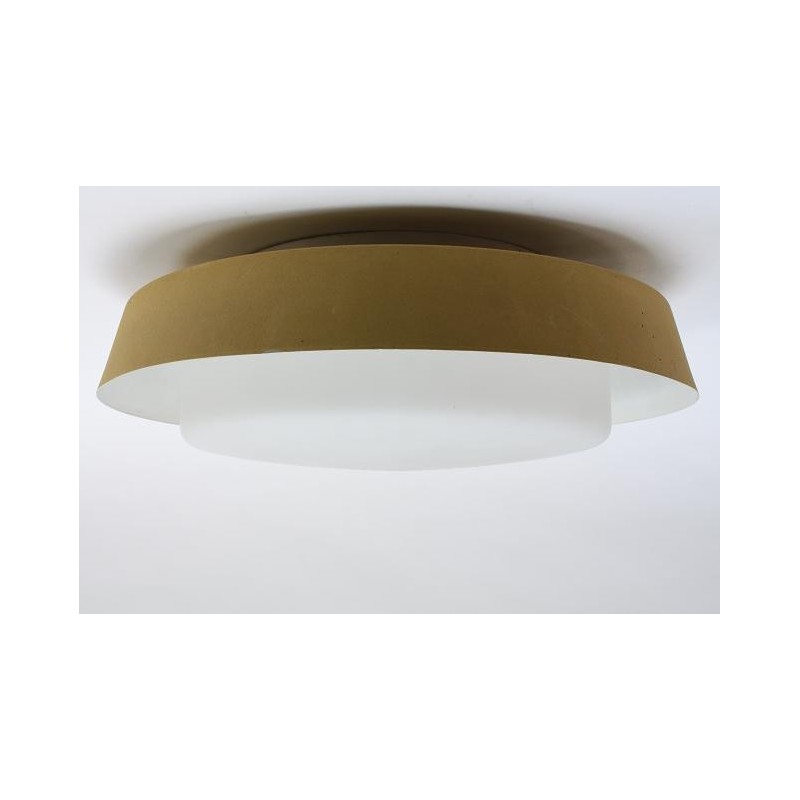 Ceiling lamp of the brand Philips. The lamp has a frosted glass shade whit a yellow metal hood over it. The lamp is in a good condition. The