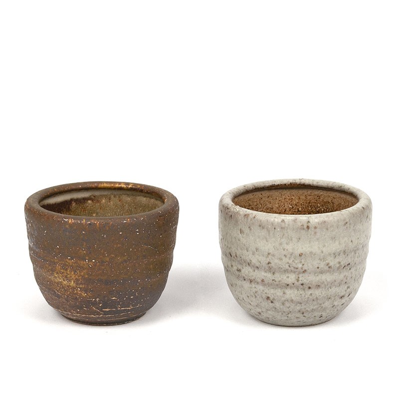 Set of 2 vintage flower pots. The flower pots are made in the Utrecht ceramics factory Mobach. The condition is good, undamaged, see details. The dimensions are 9 cm in diameter and 7 cm high.