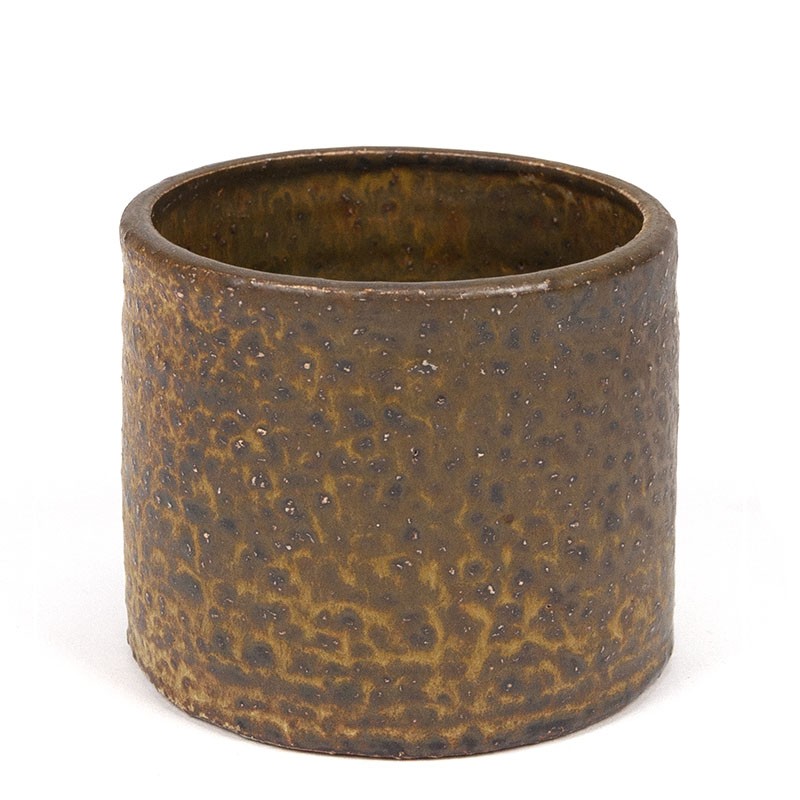 Ceramic flower pot from the Utrecht ceramics factory Mobach. Beautiful brown tint, marked on the bottom. Coming from the period 1965-1980. The condition is good, undamaged, see details. The dimensions are 8 cm high and 9 cm in diameter.