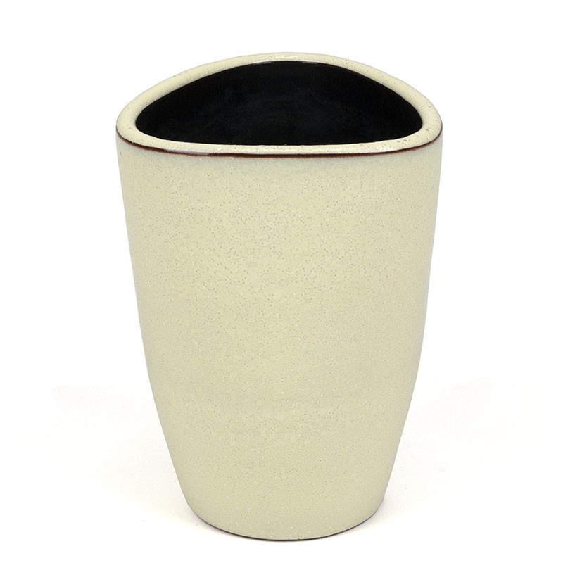 Dutch vintage ceramic vase. The vases made by the Ravelli pottery factory, around 1960. Beautiful model in a soft yellow color, marked and numbered on the bottom. The condition is good, undamaged, see details. The dimensions are 13.5 cm high and 9.5 cm in diameter.