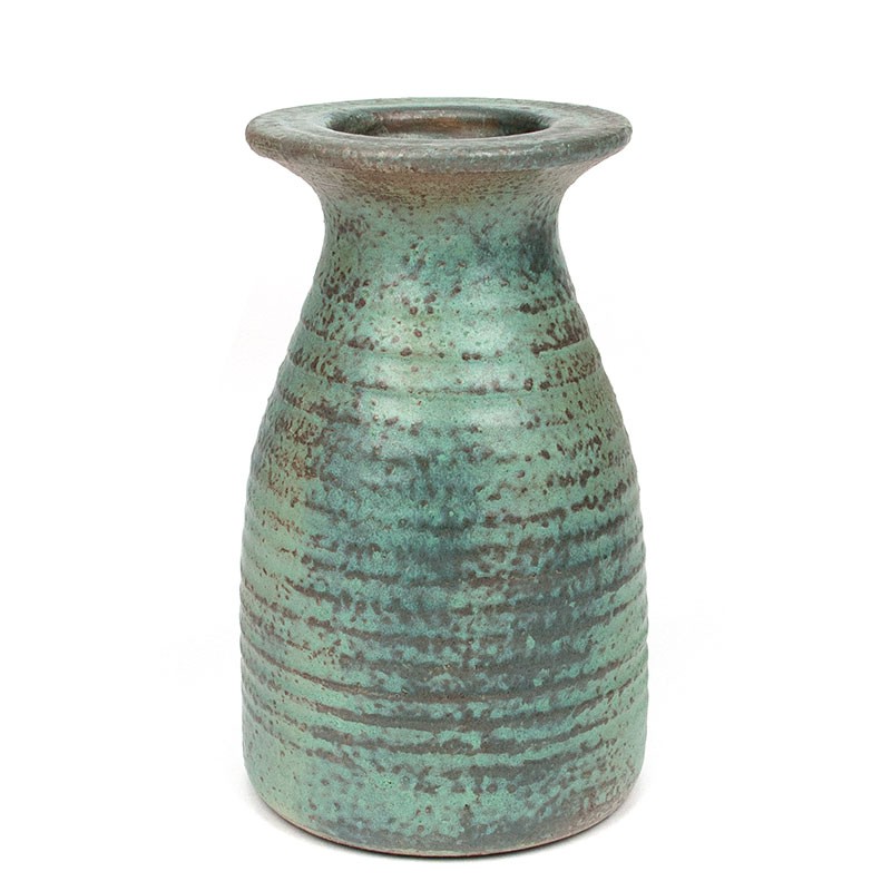 Green unica vase by Mobach Utrecht. The vintage vase is made in the period 1965-1980 and is made by Piet Knepper, see the mark. The condition is good, undamaged, see details. The dimensions are 14.5 cm in diameter and 23.5 cm high.