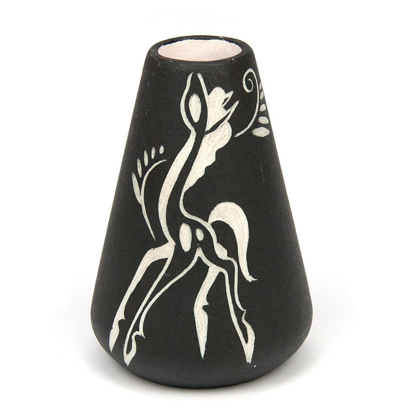 Miniature vase by L'Ancora, Herman Hubert Van Den Kroonenberg. Beautiful small vintage ceramic vase with a deer as image. The condition is good, undamaged, see details. The dimensions are 8 cm high and 5.5 cm in diameter.