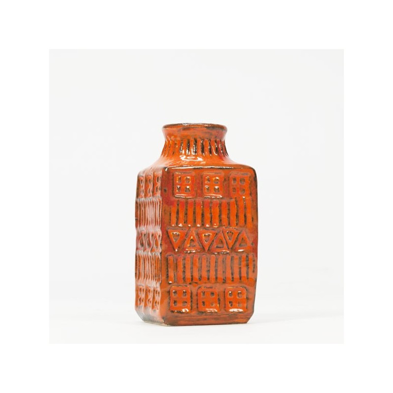 Vintage vase from the German brand Bay (West Germany). Beautifully decorated in orange. The vase is in an undamaged condition, see the detailed pictures. The height is 14 cm.