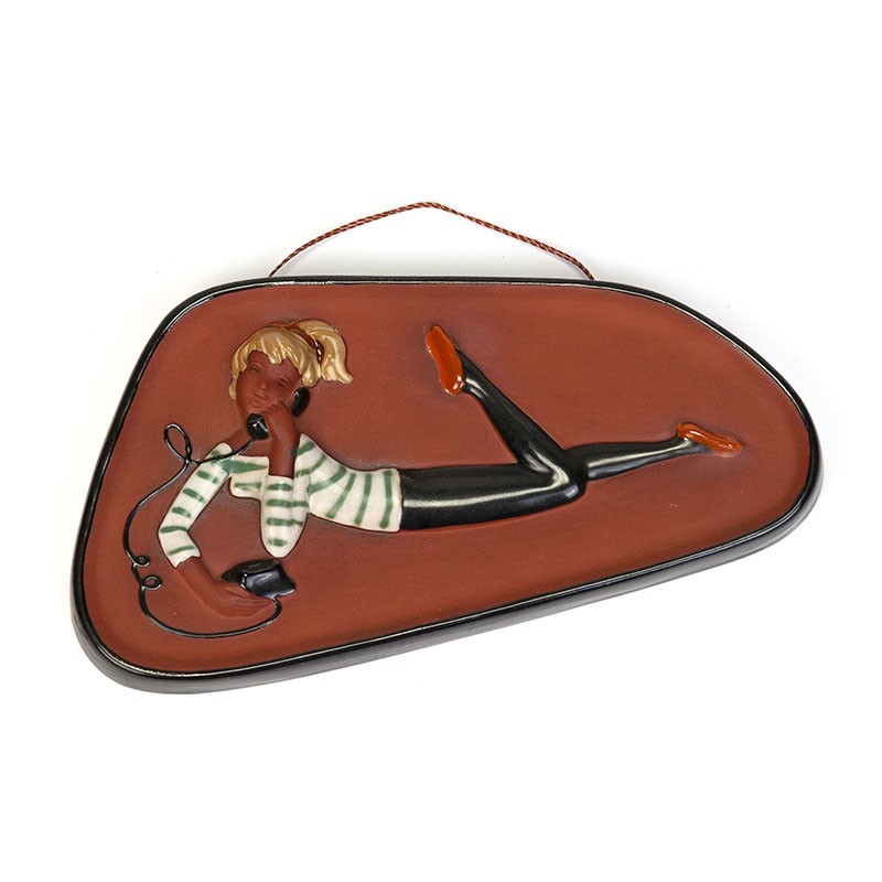 Ceramic wall tile from the sixties. Nice image of a girl. The vintage wall plate is not marked. The condition is good considering the age, see details. The dimensions are 29 cm wide and 15.5 cm high.