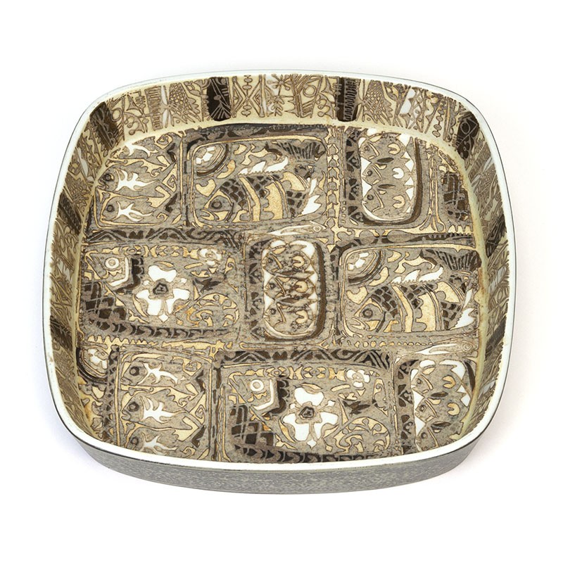 Earthenware vintage plate from Royal Copenhagen. The bowl is part of the Aluminia Baca series, number 719/2885. The condition is good, see details. The dimensions are 26.5 cm wide and long, the height is 5 cm.