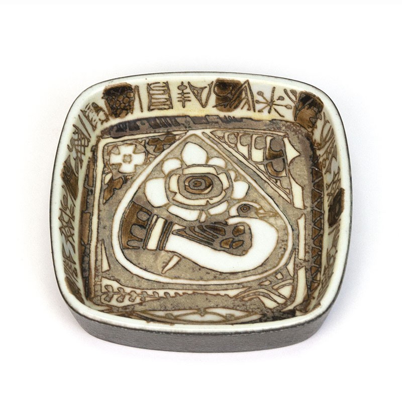Smallest model Royal Copenhagen bowl. Part of the Aluminia Baca series, model number 719/2882. The vintage bowl is marked on the bottom. The condition is good, undamaged, see details. The dimensions are 11.3 cm wide / long and 2.5 cm high.