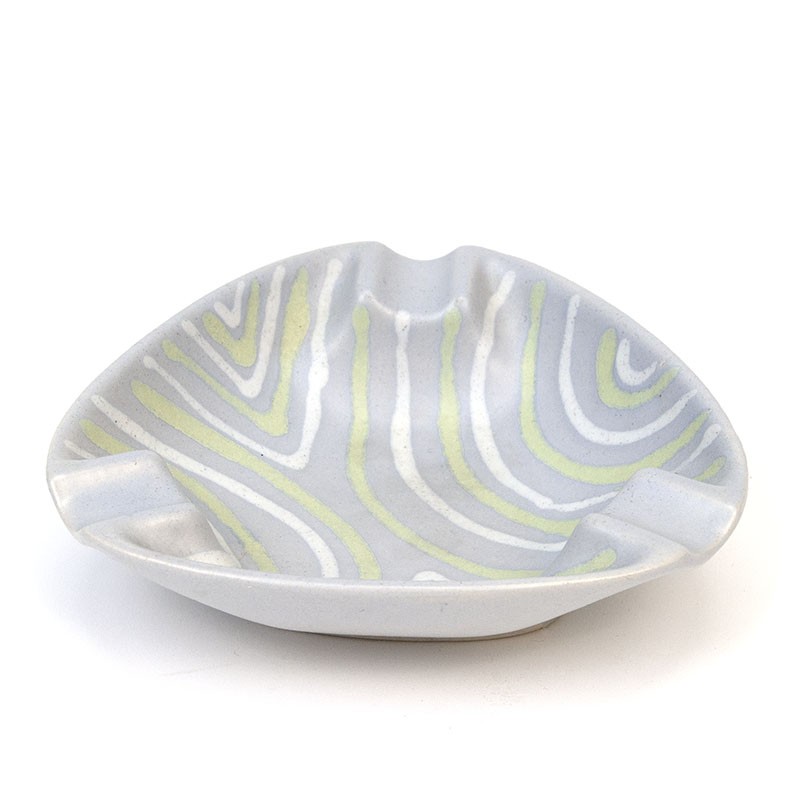 Vintage earthenware ashtray from the fifties / sixties. Marked on the bottom with the Höhr sign and numbered. The condition is good, undamaged, see details. The dimensions are 14.5 cm wide and 4.5 cm high.