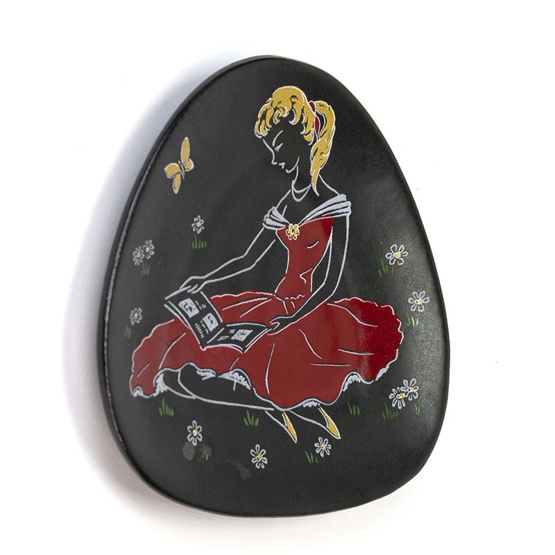 Vintage wall tile from the fifties / sixties. Beautiful, colorful image. The condition is good, undamaged, see details. The dimensions are 13 cm wide and 12.5 cm high.