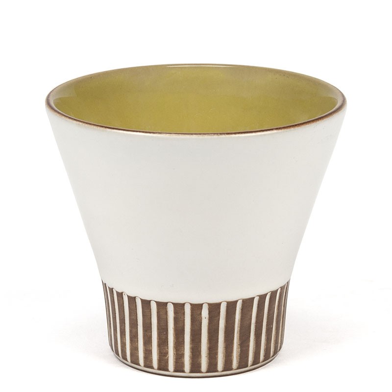Dutch pottery flower pot from Edam. The flower pot was designed by W. H. de Vries for Fris Edam in 1961 as part of the Cleopatra series. The condition is good, undamaged, see details. The dimensions are 9 cm high and 10.2 cm in diameter.