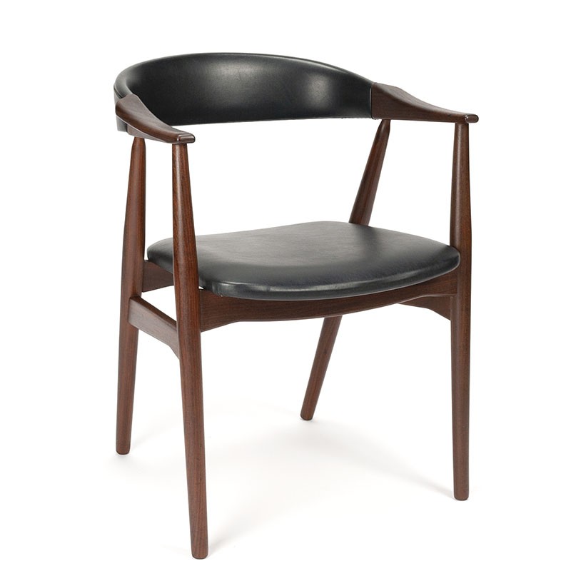 Design chair from the late fifties, early sixties. Designed by Thomas Harlev for Farstrup Møbler as model number 213. Beautiful original vintage version with teak frame and black leatherette upholstery. The condition is good, upholstery in good condition, see detail. The dimensions are 56 cm wide, 45.5 cm seat height and 72 cm high.