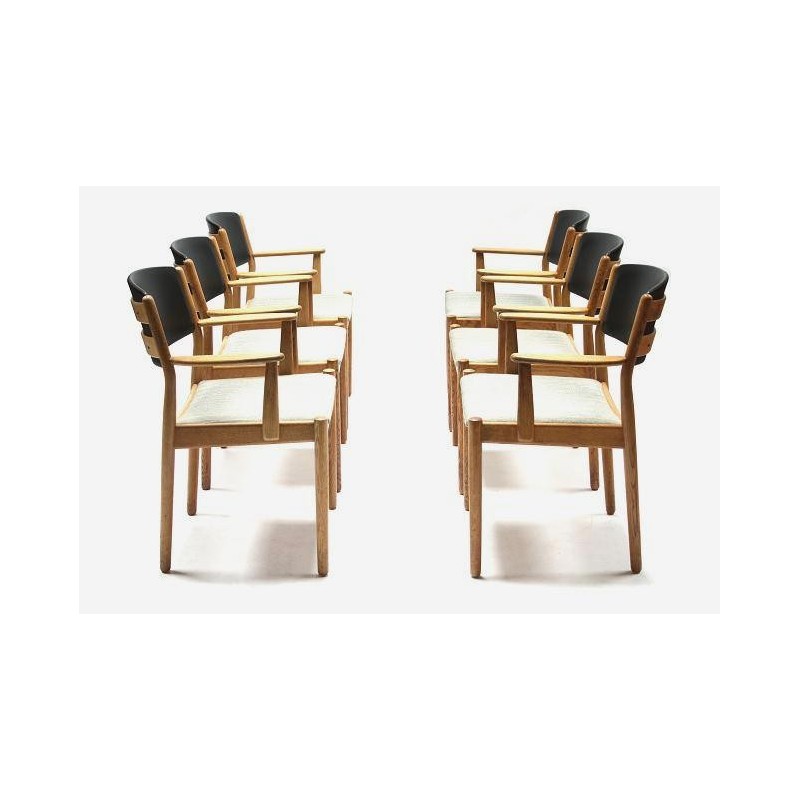 Nice set of 6 wide chairs with a high comfort, designed by Poul Volther for FDB Mobler. The