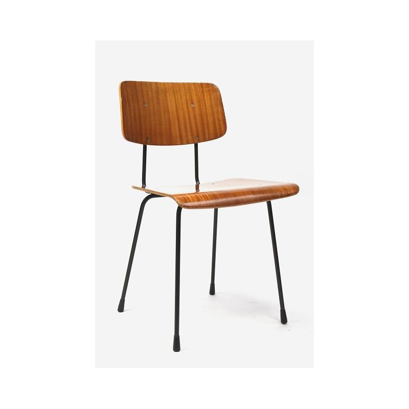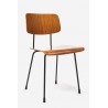 Gispen chair designed by A.R. Cordemeijer in the sixties. The chair has a black metal frame and a wooden seat and backrest. The chair is in a fairly