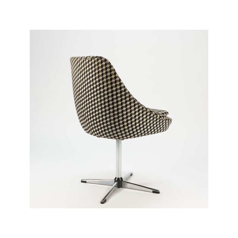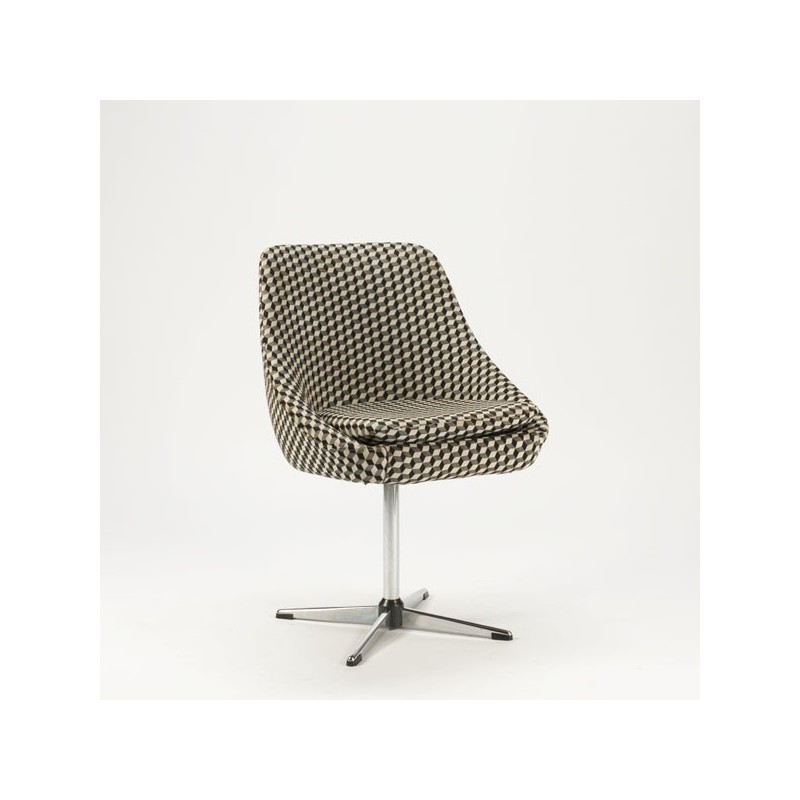 Vintage chair from the seventies. The chair has a fabric upholstery. The condition is good considering the age, see detailed pictures. The size is 81.5 cm H / 49 cm SH / 56 cm W.
