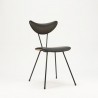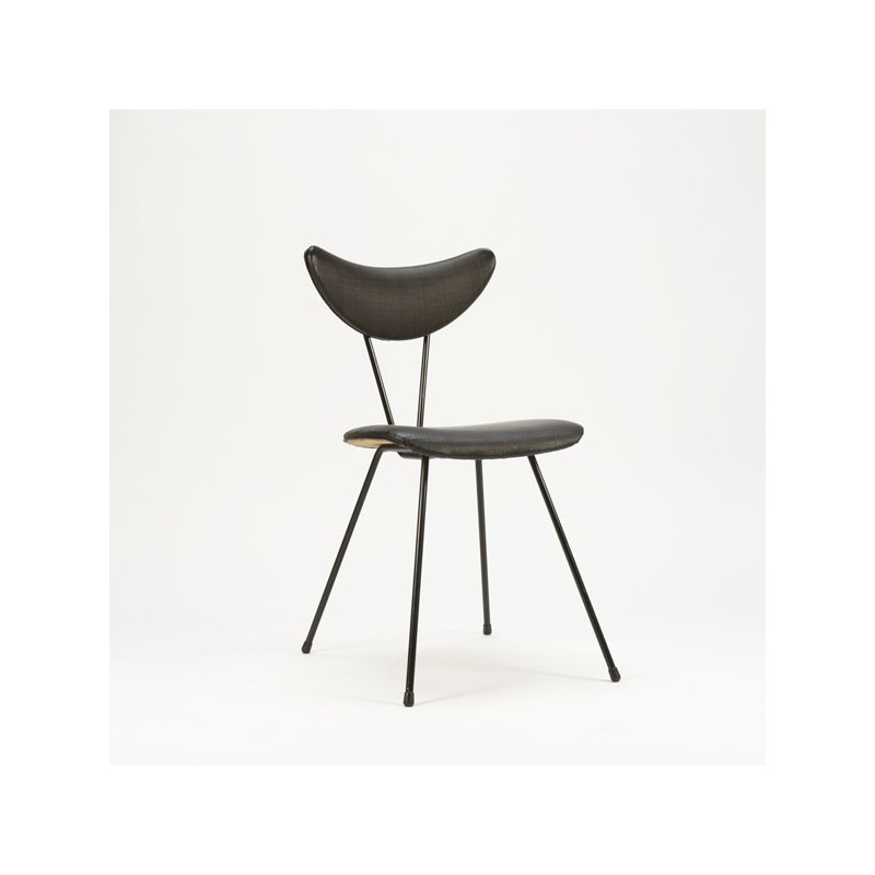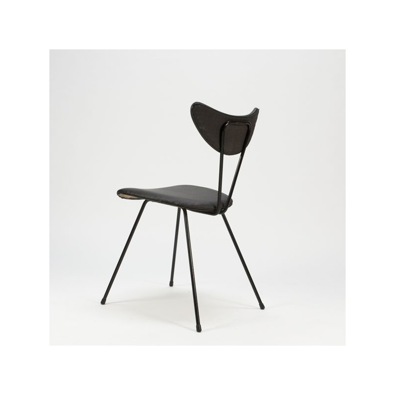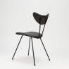 Beautifully designed chair from the fifties. The chair has a black frame and upholstery. The condition is good considering the age, see also detailed pcitures. The size is 80 cm H/46, 5 cm SH / 41 cm W.