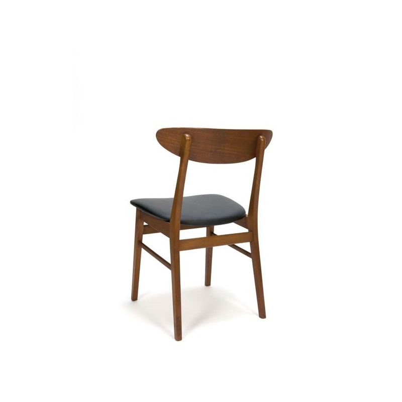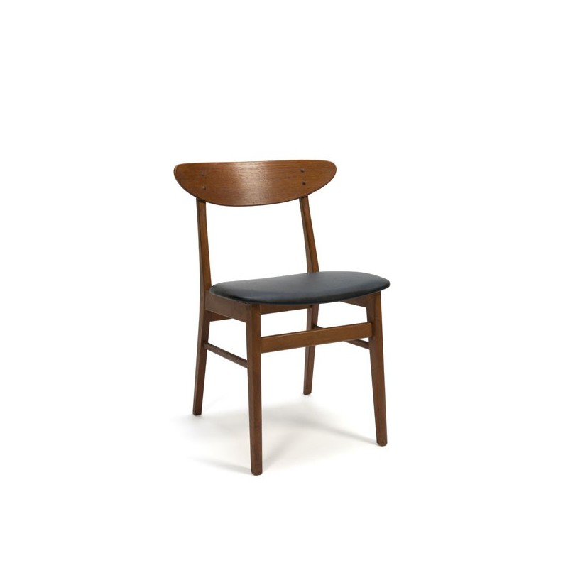 Danish vintage design dining chairs, model 210, made in the sixties in the Farstrup furniture factory. Beautiful set with nicely curved teak backrest. The condition is very good considering the age, see the detail photos. The dimensions are 46 cm W / 46 cm SH / 77.5 cm H.