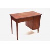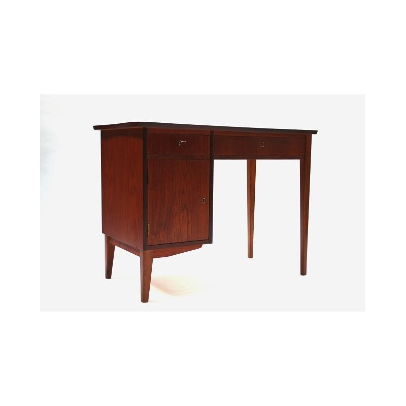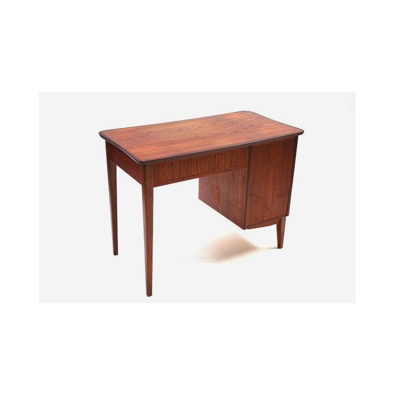 Beautiful designed small vintage desk made in teak, from Scandinavia. The desk has a special formed top, see detailed pictures. The desk is from the end of the 1960's and in a good condiotn given it's age, there ane some small spots on the top. The dimension is 101,5 cm L/ 54 cm