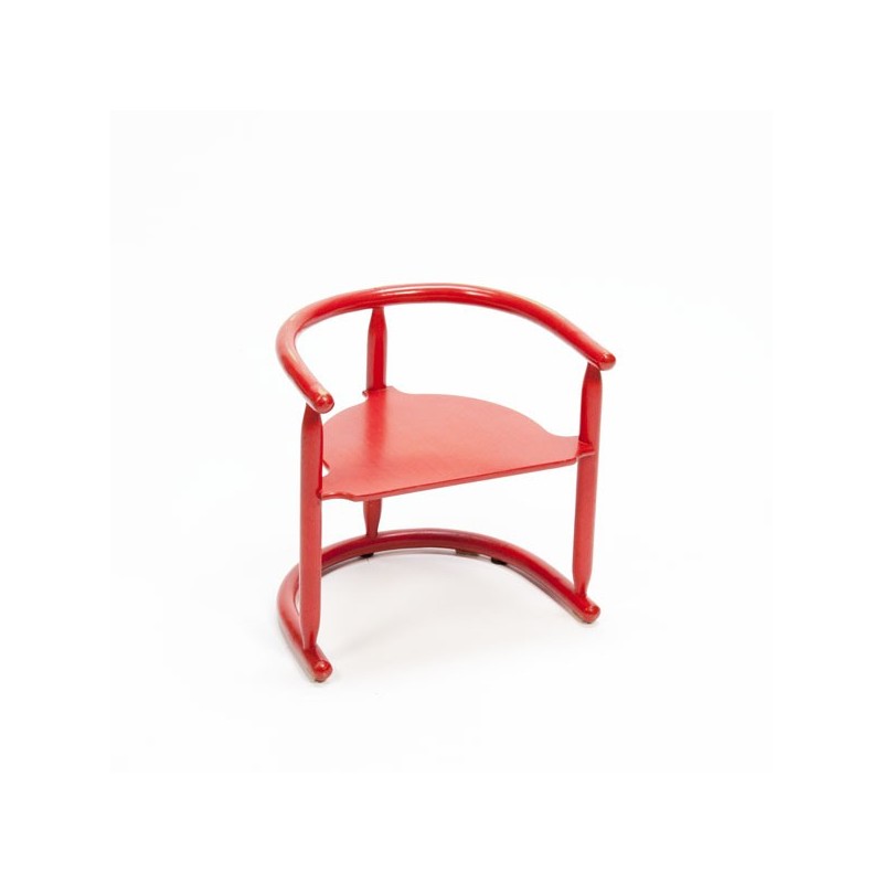 Wooden child's chair designed by Karin Morbing for Ikea in 1963. It is possible to turn the chair and use at different seat heights. The chair is in fair condition given it's age (see detail photos). The size is 38.5 cm H / 24.5 cm SH- 15cm SH/ 43 cm W.