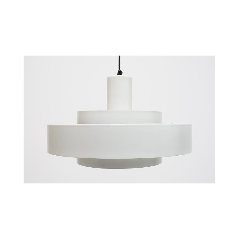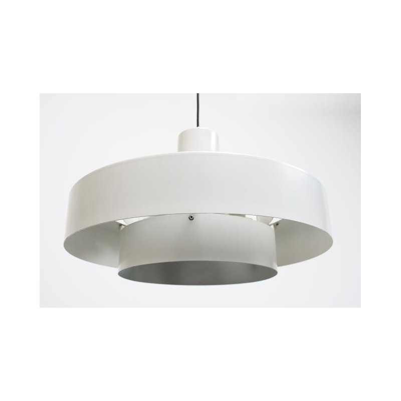 White metal hanging from the Scandinavian brand Fog & Morup. The lamp consists of a series of metal rings and gives a beautiful light. The lamp is marked with a sticker and is in a good condition. The size is 40 cm in diameter and 25 cm high.