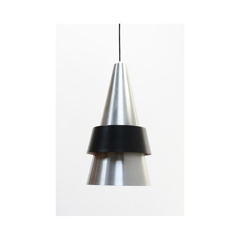Design lamp "Corona" designed in the Sixties by Jo Hammerborg for Fog & Morup. The aluminium lamp has a black ring and