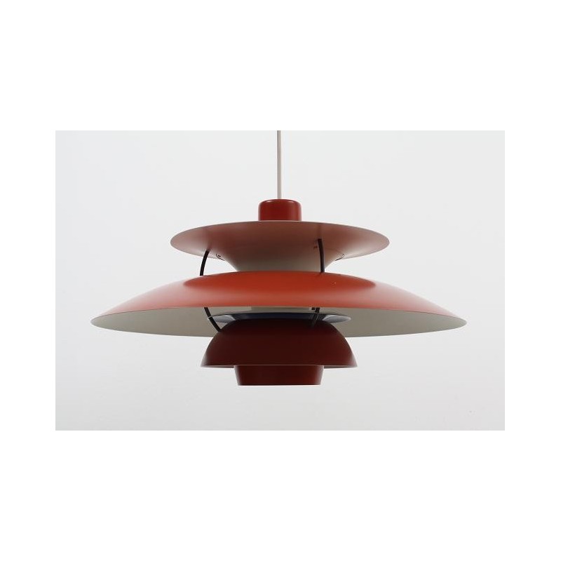 Original vintage PH 5 lamp designed by Poul Henningsen in 1958, Denmark. This lamp is an early edition, the colour orange, the inside is white,