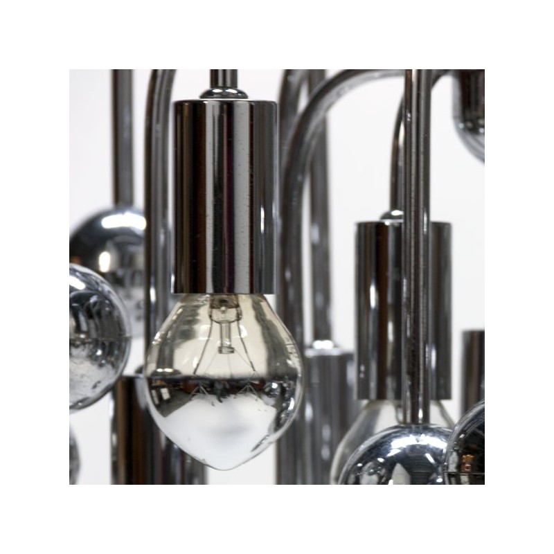 Vintage design hanging lamp from the sixties. The lamp looks like a sputnik lamp, but hang the balls facing down on this model. The condition is good considering the age, but there is a few spots which oxidation visible, see detailed pictures. The size is 37 cm in diameter, the height includes ceiling rod 82.5 cm.