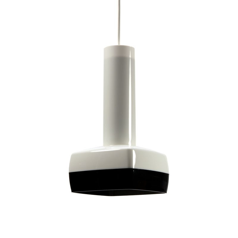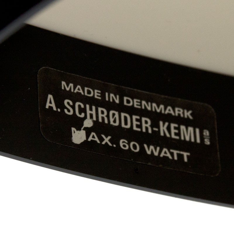 Danish vintage design hanging lamp from the late sixties. The lamp is marked A. Schrøder-Kemi and made of black and white plastic. The condition is good given it's age, see the details. The dimensions are 26 cm high and 14 cm wide.