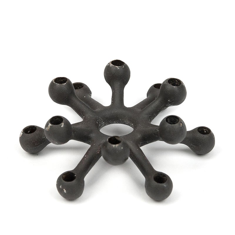 Design miniature candlestick made of cast iron. The vintage Danish candlestick was designed by Jens Quistgaard as part of the Paro series. The condition is good considering the age, see details. The dimensions are 10.5 cm in diameter and 3.5 cm high.