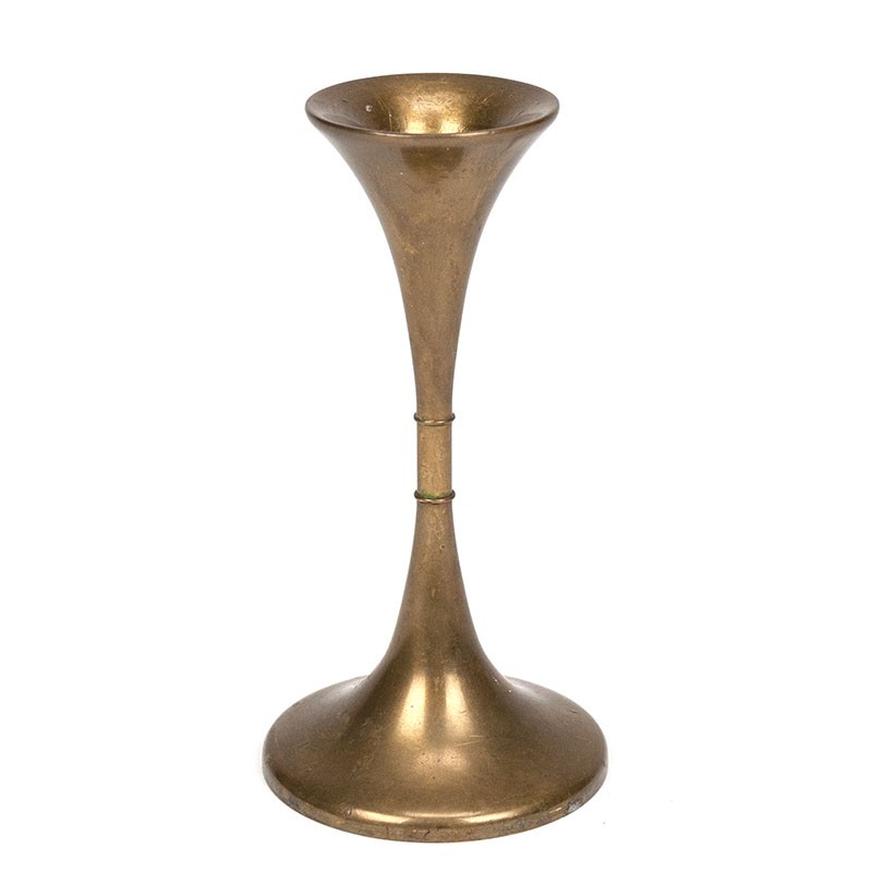 Danish design candlestick from the fifties/sixties. The candlestick is made of brass and marked on the bottom: F.W. Danish Design. The condition is good, the brass has not been polished, see details. The dimensions are 13.5 cm high and 7 cm in diameter (base).