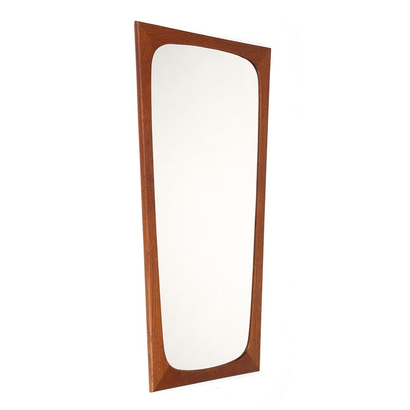 Danish vintage mirror from the period 1960-1969. The Mid-Century design mirror has a beautiful tapered design. The condition is good, only minimal traces of use, see details. The dimensions are 38.5 cm wide and 70.5 cm high.
