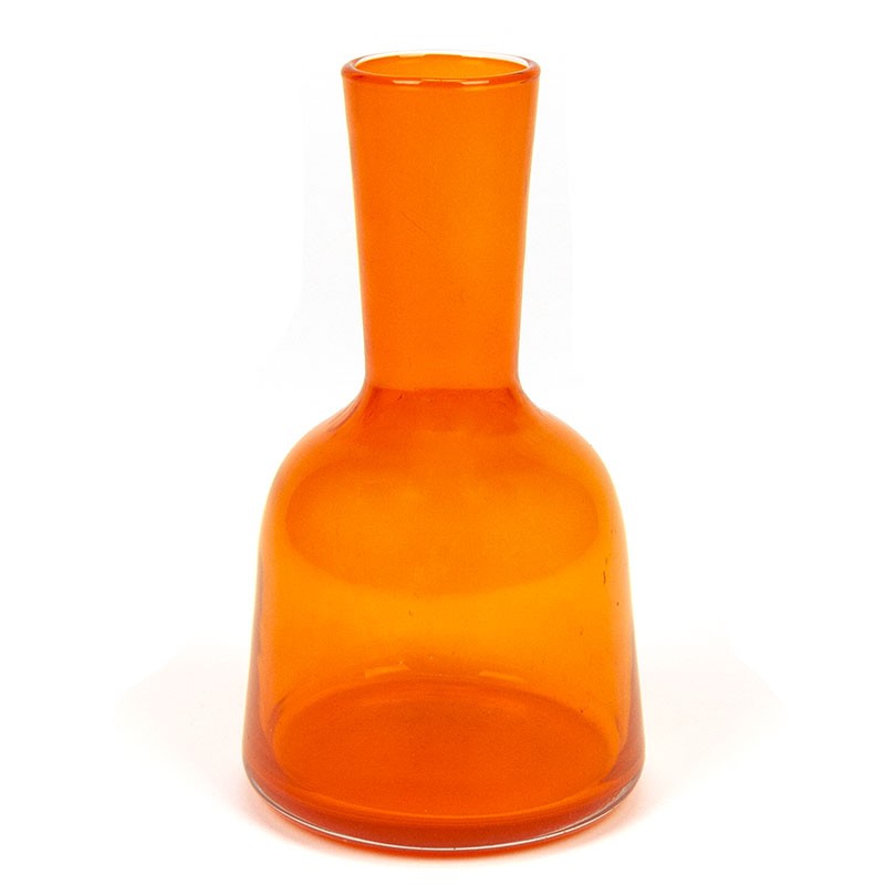 Vintage vase in clear orange glass. Beautifully designed with a slim neck. The condition is good, undamaged, see details. The dimensions are 16.5 cm high and 9 cm in diameter.