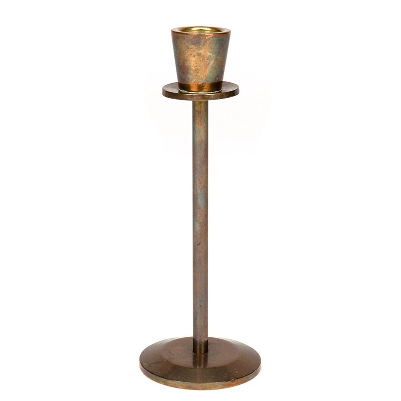 Slim model vintage candlestick from the sixties. The condition is good considering the age, brass has not been polished, see details. The dimensions are 17.5 cm high and the base is 6.5 cm in diameter.