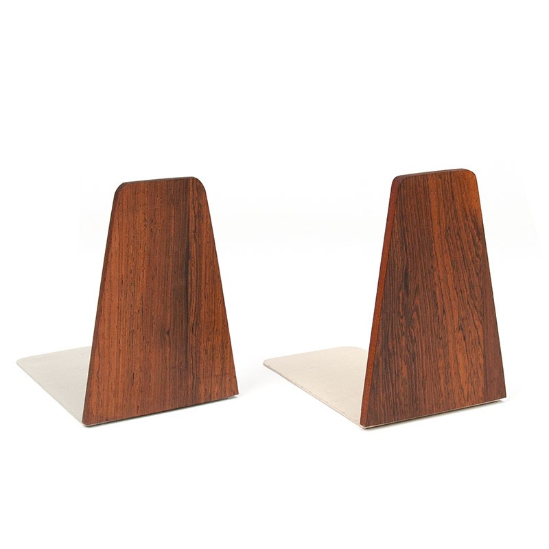 Set of 2 rosewood bookends. The design of the vintage set is attributed to Kai Kristiansen. The condition is good, see details. The dimensions are 9 cm wide and 13 cm high.