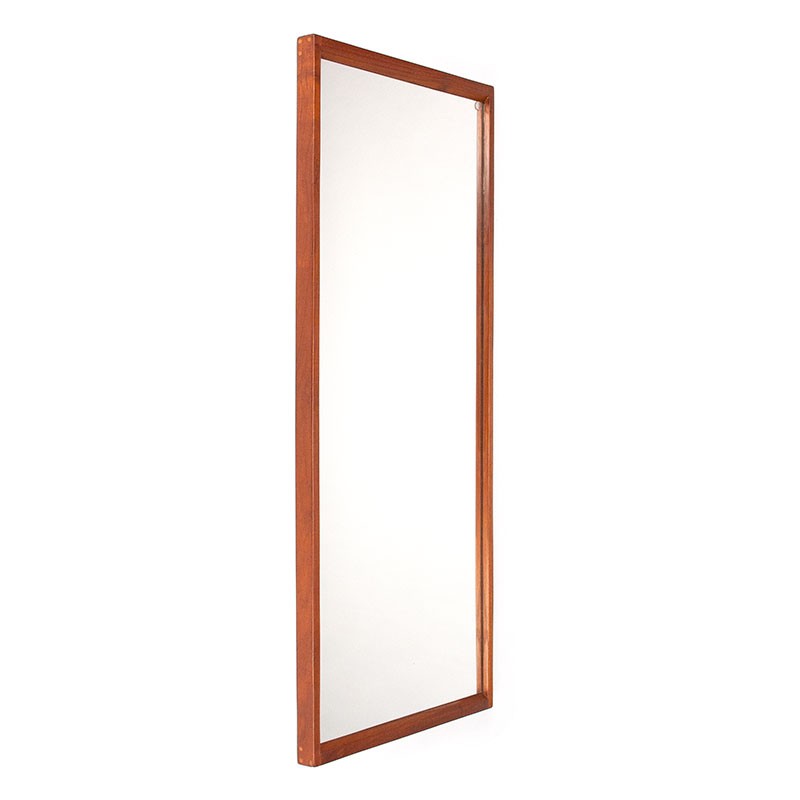 Design mirror from the period 1960-1969, Denmark. The vintage mirror is a design by Kai Kristiansen for Aksel Kjersgaard, Odder. The mirror, model number 145, is made of teak. The original back is no longer present. The condition is good, only minimal traces of use, see details. The dimensions are 41 cm wide, 3 cm deep and 104 cm high.
