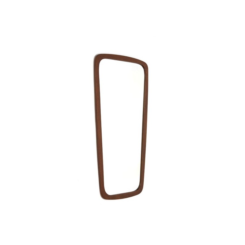Vintage design mirror from the sixties. The mirror is made in Denmark and beside the beautiful design it is having a beautiful teak rim. The condition is good considering the age, see the detail photos. The dimension is 70 cm high and 37 cm wide.