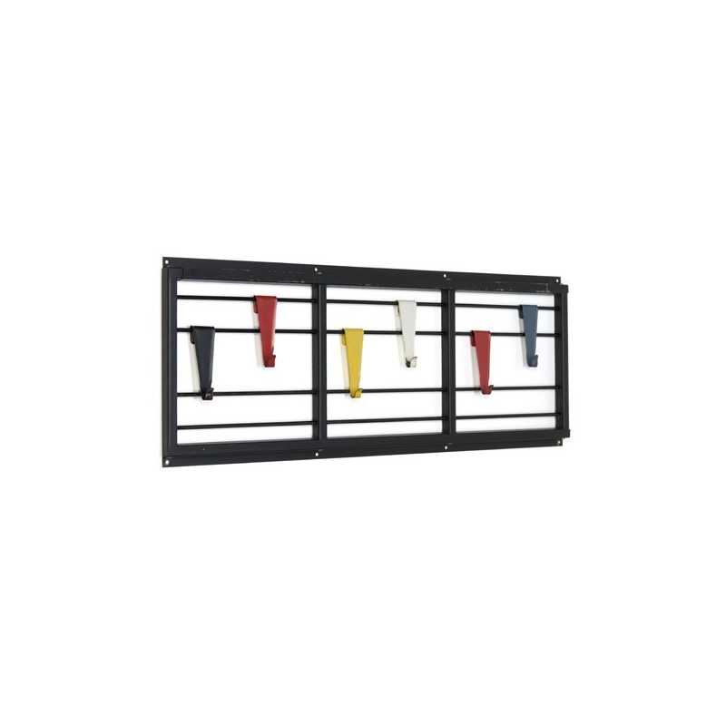 Dutch design from the 1950s. The Servo Muto coat rack is designed by Tjerk Reijenga for Pilastro. Black metal frame and 6 hooks in different colors. The condition is good given it's age, there are traces of use, see the detailed pictures. The dimensions are 76 cm long and 29 cm high.