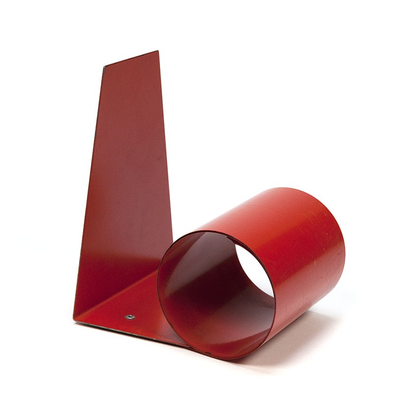 Vintage bookend from the late sixties, early seventies. The bookend is made of red metal. By rolling out the bookend, books are clamped against each other. The condition is good considering the age, only minor traces of use, see details. The dimensions are 13 cm long (can be rolled out to 50 cm), 12.5 cm wide and 15.5 cm high.
