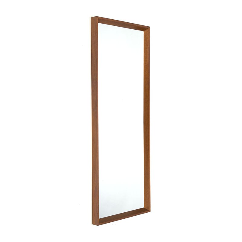 Design mirror from the sixties. The vintage mirror is marked, number 343 A, and comes from the Aarhus glass factory. Sleek design in teak. The condition is good considering the age, see details. The dimensions are 35 cm wide, 3.5 cm deep and 90 cm high.