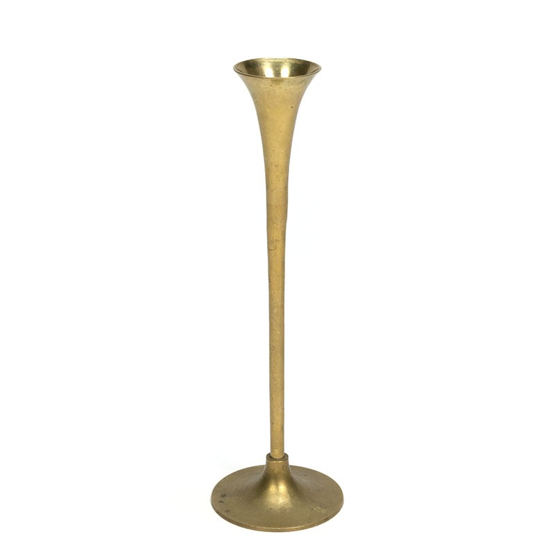 Slim model candlestick from the sixties. The vintage candlestick has a beautiful trumpet design. The condition is good considering the age, slightly spotty, see details. The dimensions are 25 cm high and 7 cm in diameter.