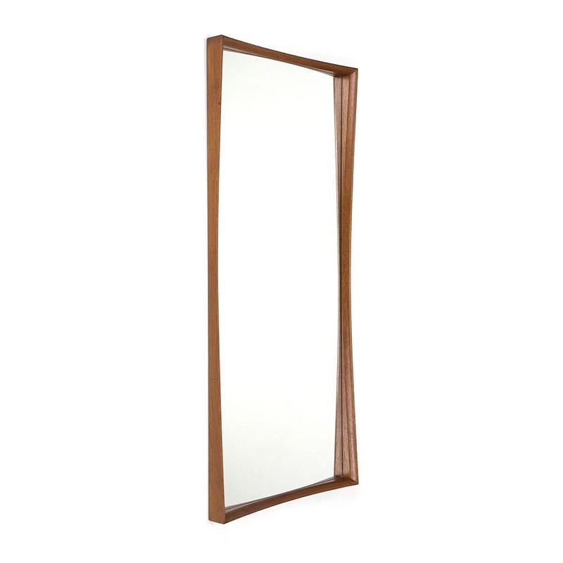 Special vintage mirror from the sixties. Nice detail is the edge of the mirror. The mirror is from Denmark, is stamped and numbered. The condition is good, minimal traces of use, see details. The dimensions are 42.5 cm wide, 4.5 cm deep and 96 cm high.