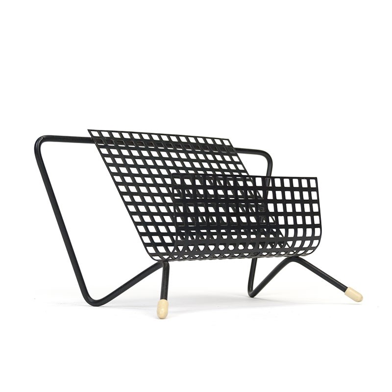 Letter holder from the fifties. Nicely designed model with black metal frame and perforated metal. The condition is good, minimal traces of use, see details. The dimensions are 19 cm wide, 10 cm deep and 10.5 cm high.