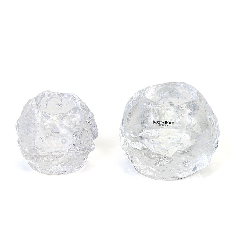 Swedish set of 2 candle holders for tea lights. The vintage set was designed by Ann Warff in 1973 for Kosta Boda. The set consist 2 sizes. The condition is good, undamaged, see details. The dimensions are 7 cm in diameter, 6 cm high and 9 cm in diameter and 7 cm high.