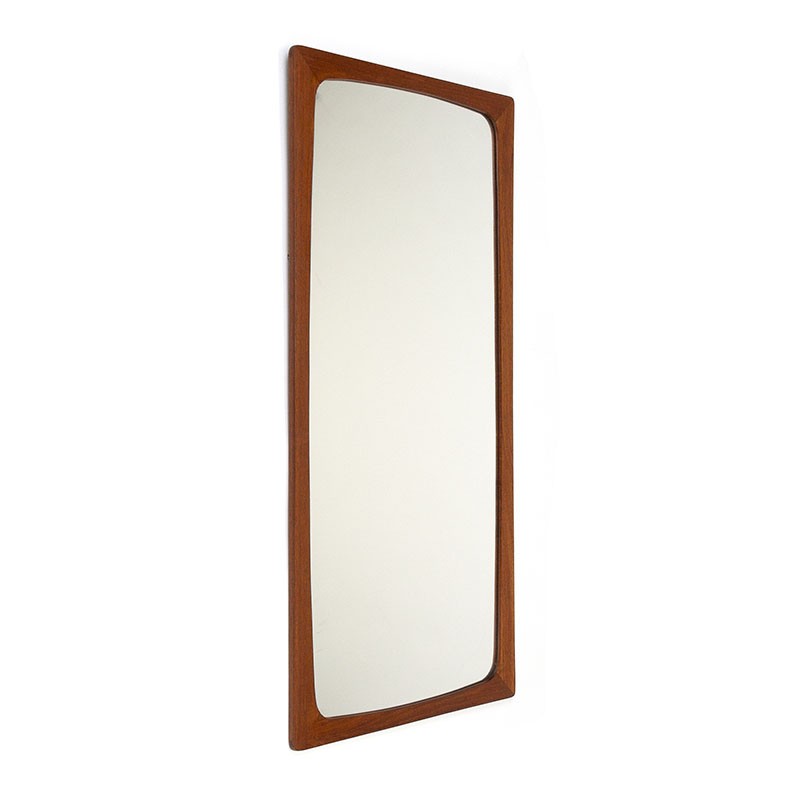 Danish mirror with teak edge from the sixties. The vintage mirror is marked on the back with a control sticker. The condition is good considering the age, minimal wear, see details. The dimensions are 35.5 cm wide and 75 cm high.