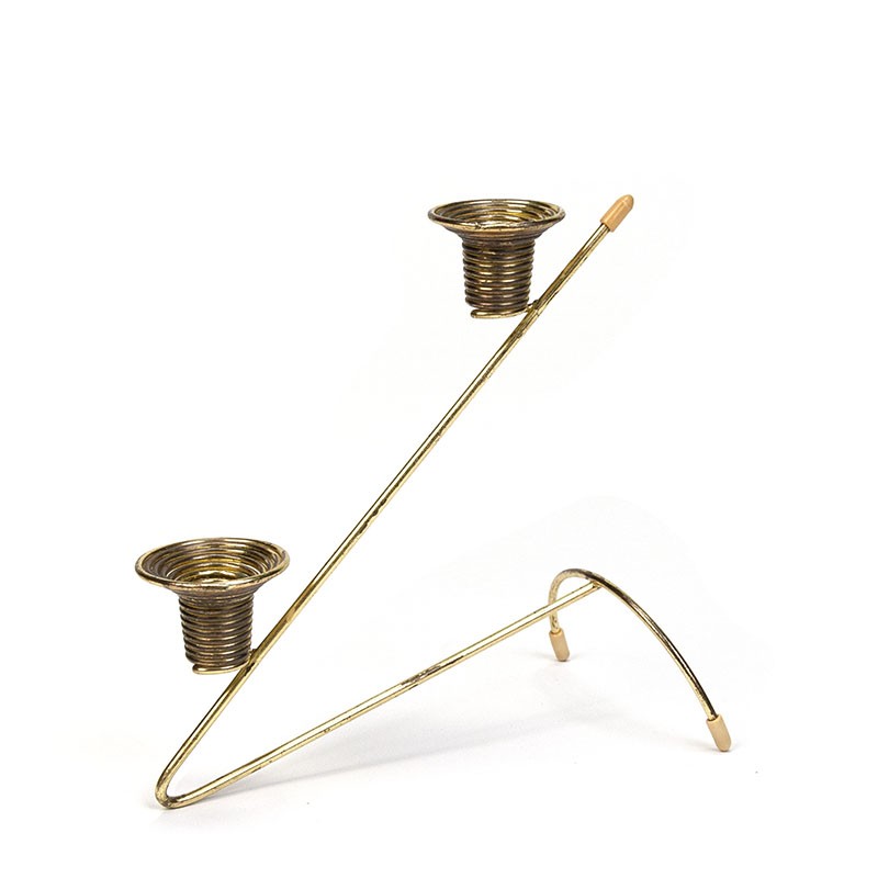 Brass candlestick from the sixties. The vintage candlestick is stylishly designed and made of wire metal. The condition is good considering the age, see details. The dimensions are 18.5 cm long, 10 cm wide and 17.5 cm high.