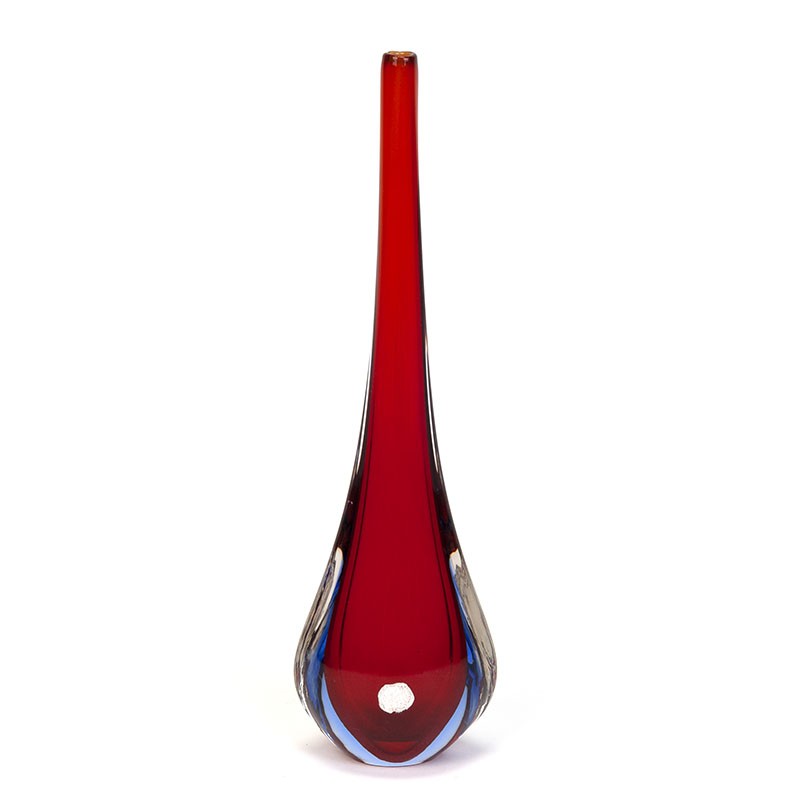 Italian vintage design vase from Murano, Italy, 1960s. Performed with the Sommerso technique in red and blue. Design is by Fabio Poli. The condition is good, undamaged, see details. The dimensions are 30 cm high and 8.5 cm wide.