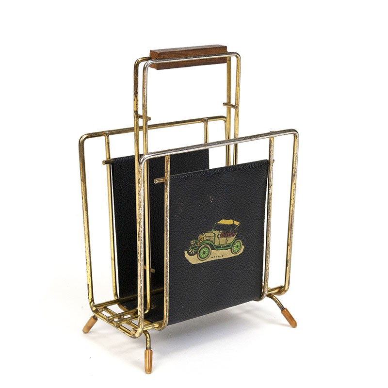 Letter holder from the sixties. The vintage letter holder has an image of a car on the front. The condition is good considering the age, see details. The dimensions are 10.5 cm wide, 6.5 cm deep and 16.5 cm high.