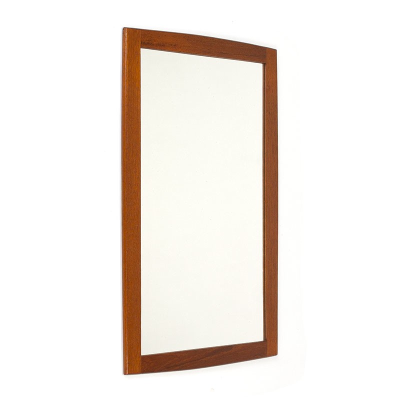 Danish vintage mirror with teak edge. Nicely designed, the edge has a very small subtle curve. The condition is good, minimal traces of use, see details. The dimensions are 56 cm high and 36 cm wide.