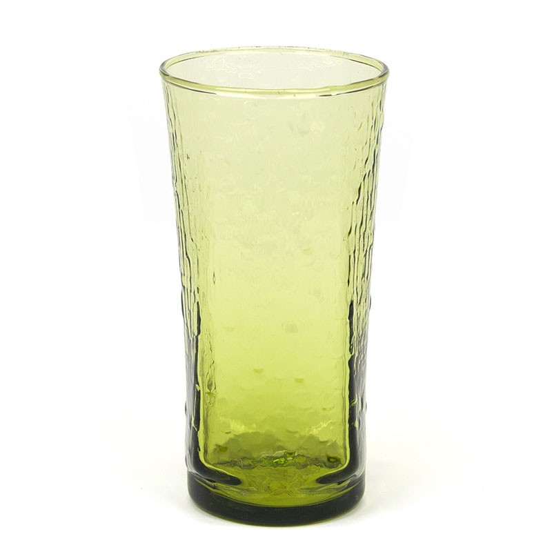 Green glass vase from the sixties. The vintage vase comes from Finland. The condition is good, undamaged, see details. The dimensions are 17.3 cm high and 8.8 cm in diameter.