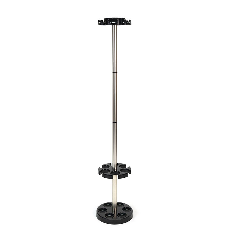 Standing coat rack with umbrella stand from the seventies. The vintage coat rack has an aluminum base in combination with black plastic. The condition is good, small spot visible ( glue) on the part where the umbrellas can be placed, see details. The dimensions are 164.5 cm high and 28 cm in diameter.