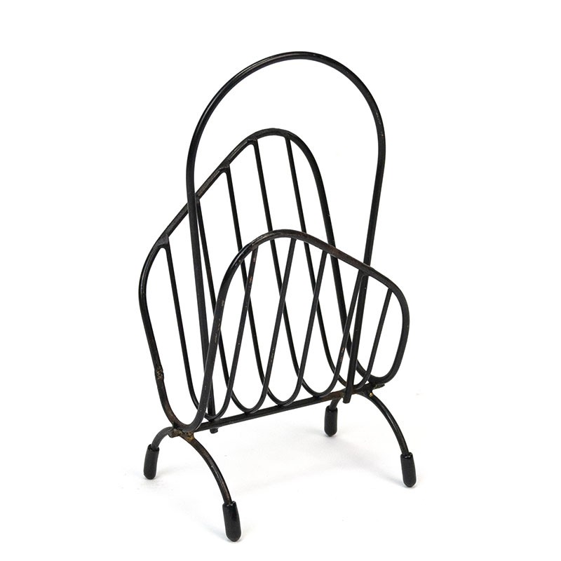 Vintage napkin holder from the sixties. Black wire metal. The condition is good considering the age, see details. The dimensions are 10 cm wide, 6 deep and 17.5 cm high.
